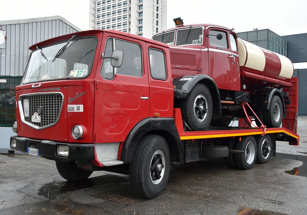 Dva nákladní vozy Lancia. Dole ve své době úspěšná Esagamma 520 (1967). Poháněl ji zážehový řadový šestiválec 12 521 cm³